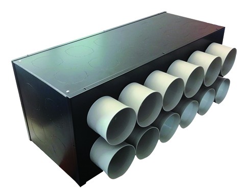 - collettori di mandata e ripresa in acciaio zincato completi di coibentazione interna fonoassorbente e termoisolante