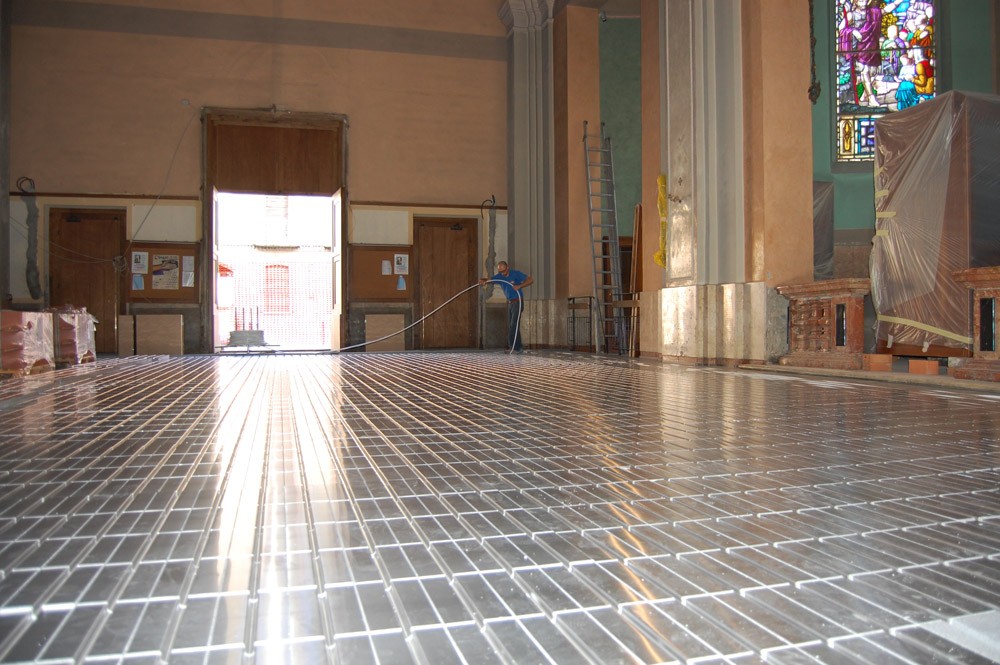 Il riscaldamento delle chiese è un complesso problema multidisciplinare, la scelta del sistema di riscaldamento deve necessariamente rispondere alle esigenze fondamentali di comfort termico e conservazione delle opere contenute nella chiesa, oltre ovviamente all’aspetto legato ai costi di gestione ed alle tempistiche dell’intervento. L’impianto che risponde al meglio a tutte queste esigenze è un impianto radiante a pavimento a secco.