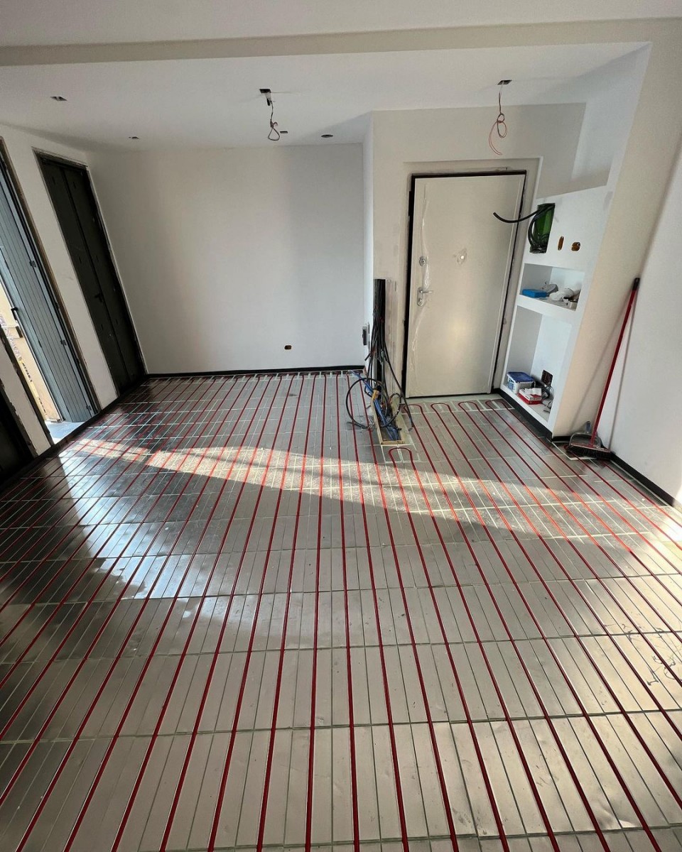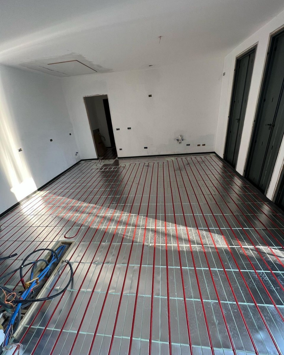 Tale impianto a pavimento risulta più facile da regolare e reagisce velocemente alle influenze ambientali (come ad esempio l’irraggiamento solare).